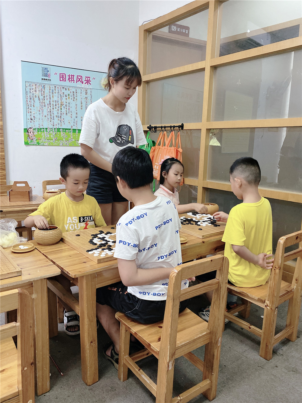 ??老師陪伴孩子練棋,針對性進行指導
